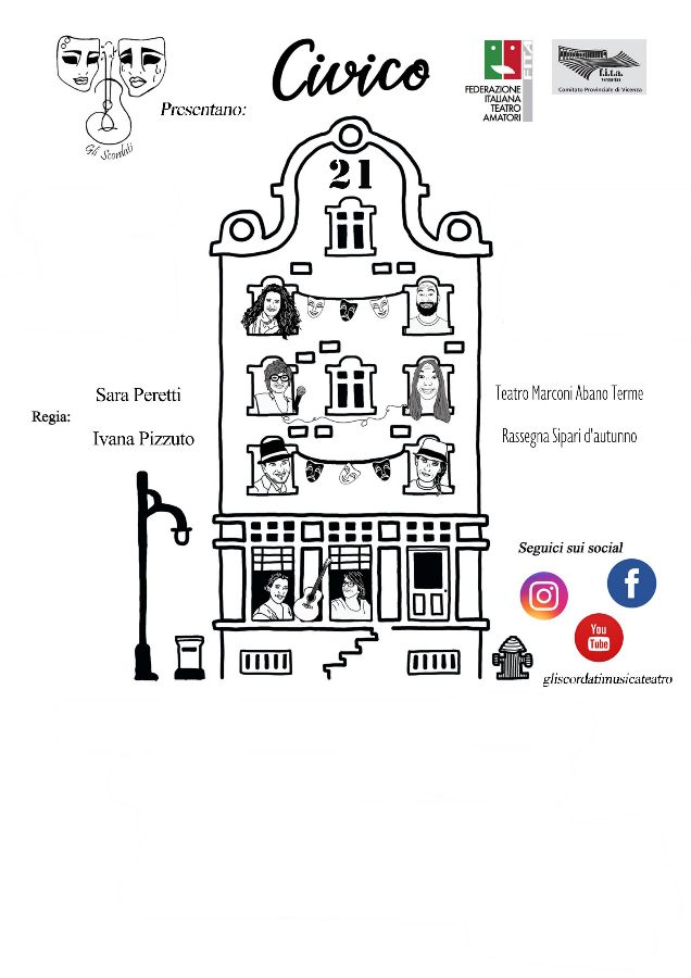 Questa commedia brillante è un ensemble di personaggi, “inquilini” di un condominio ubicato per l’appunto al civico 21, che si ritrovano ad affrontare la loro quotidianità, sotto l’attenta supervisione delle portinaie che conoscono bene le loro storie e la loro umanità.