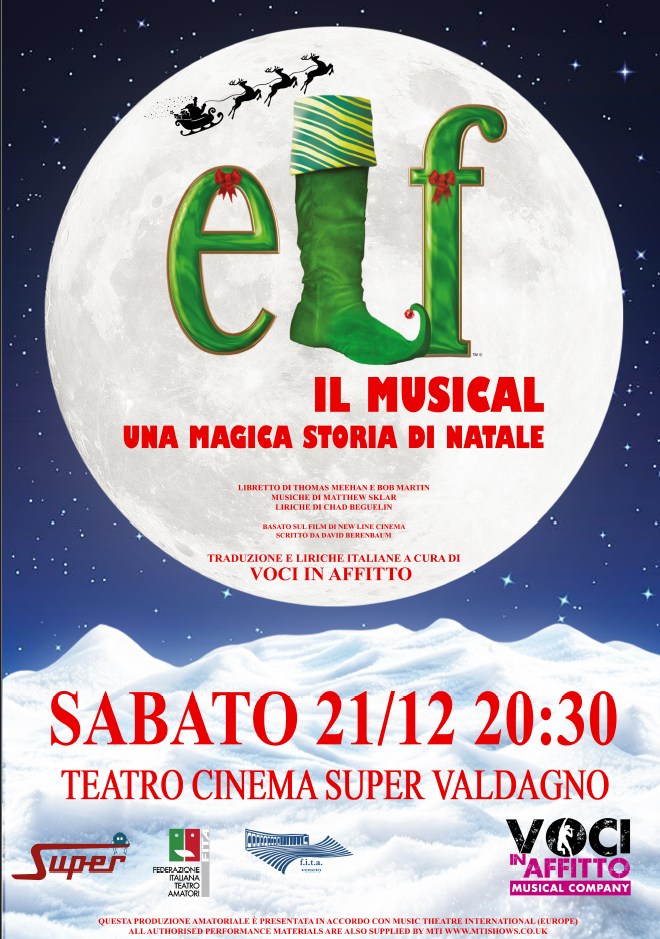 Elf il musical è una magica storia di Natale per tutta la famiglia. Dopo aver conquistatoBroadway, viene presentata qui per la primissima volta in versione italiana. Un musical che, con la sua storia e le sue musiche, interamente cantate dal vivo, è in grado di conquistare il cuore di grandi e piccini, ricordando che la vera magia del Natale non risiede nei grandi regali, ma nello stare insieme alle persone che più si amano.